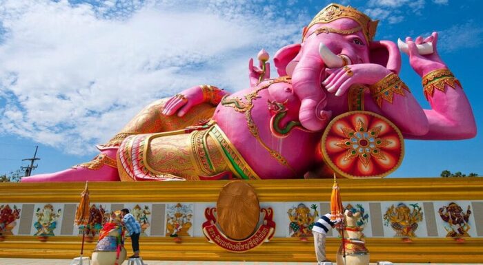 Храм Розового Ганеши (он же Wat Sanam Rattanaram), один из самых колоритных храмов в Таиланде. Кроме кавайной статуи Розового Ганеши, на территории храма Wat Sanam Rattanaram имеются ещё две крупногабаритные статуи: