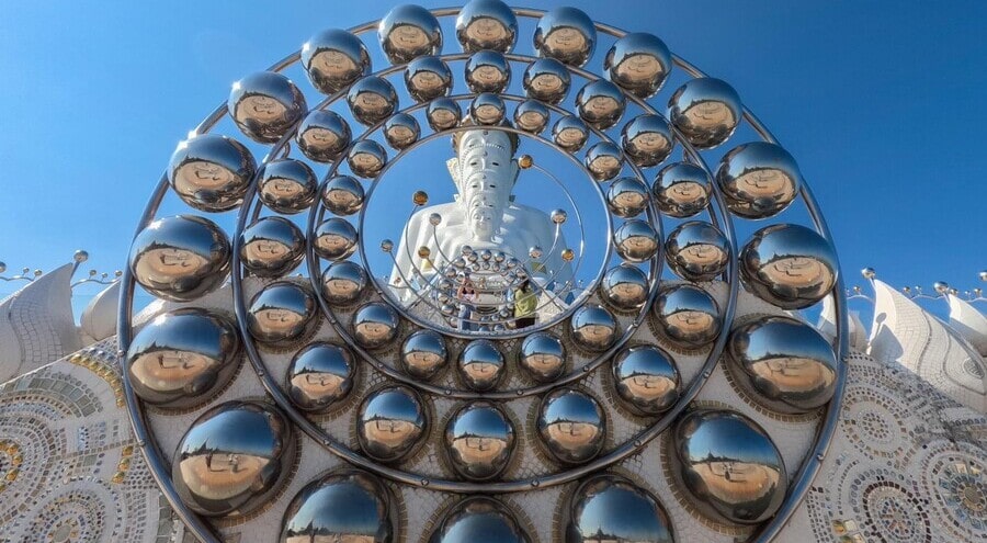 - Посещение нового гигантского храма в виде космического цилиндрического корабля у въезда в город Сарабури.