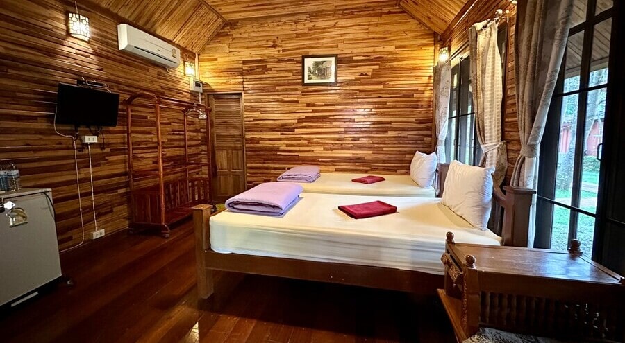 Отель на экскурсии Као Яй чудесный край расположен вдоль реки, есть большой бассейн, детская площадка. В номерах кондиционер, холодильник, чайник, телевизор, горячий душ, шампунь и мыло.