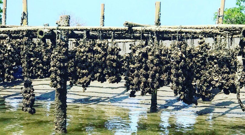 Обед в очень живописном месте, в морском заливе на плоту, среди мангровых лесов и устричных полей. На обед блюда из морской рыбы, свежесрезанные устрицы и другие деликатесы.
