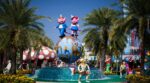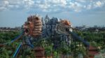 Здесь есть арена Динотопия, посвященная вымершим чудовищам. Едете на джипе по джунглям, а вокруг огромные фигуры доисторических хищников.