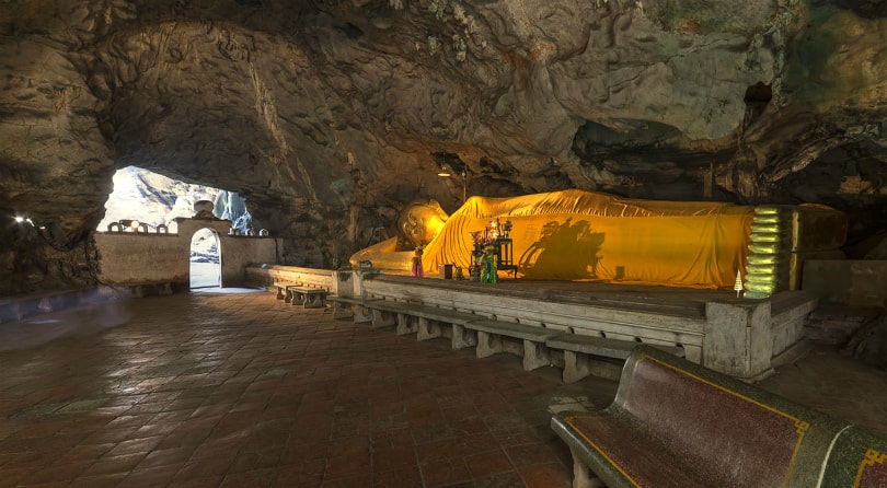 В пещере несколько залов. В одном из них есть дырка в потолке, и вы увидите необычное зрелище: солнечный свет, струящийся сверху. В этой королевской пещере располагается множество статуй Будды, в том числе и большая лежащая статуя, наподобие той, которая в Бангкоке в храме Ват По.