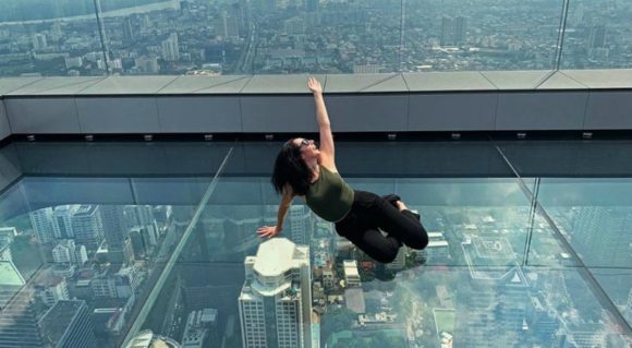 Поездка в скоростном лифте — особенное впечатление. И вы на смотровой площадке с прозрачным полом! Терраса со стеклянным полом довольно большого размера. Сделать первый шаг страшновато. Наверху – яркие огни Бангкока у ваших ног. Потрясающе!