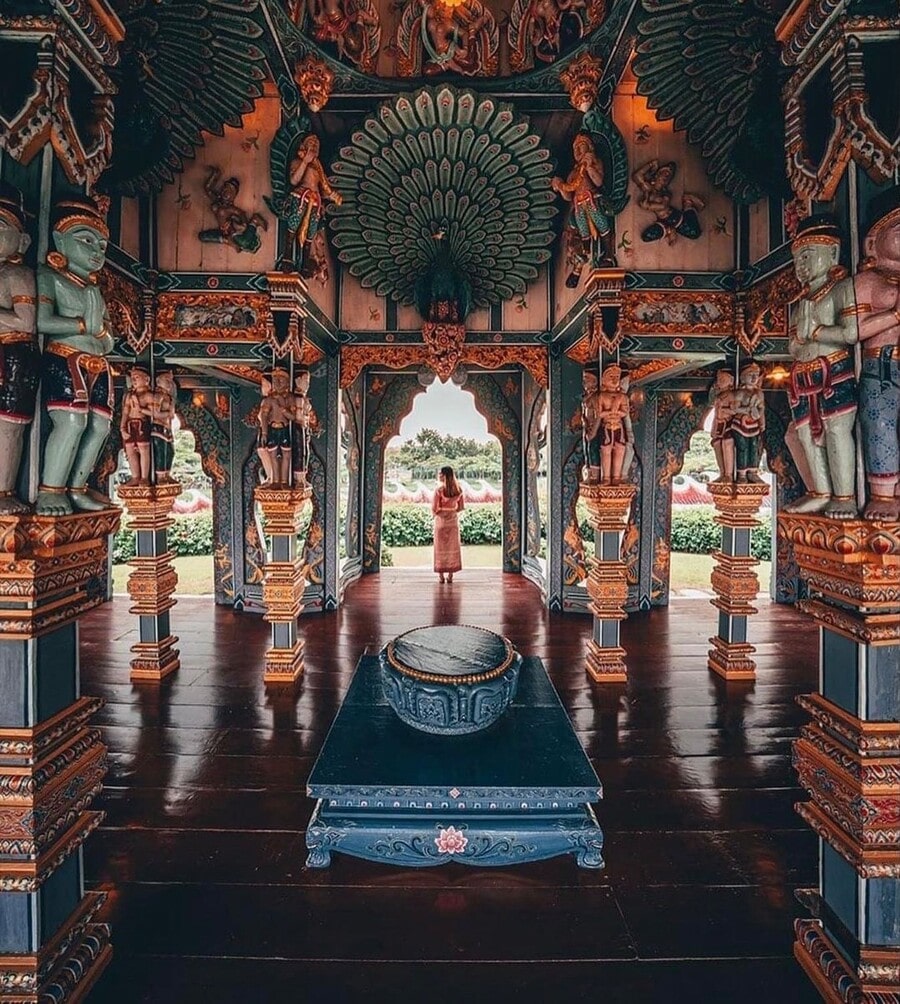 Храм Эраван разделен на три уровня, символизирующие миры восточной мифологии — землю, мир живых людей и небо, где живут боги.